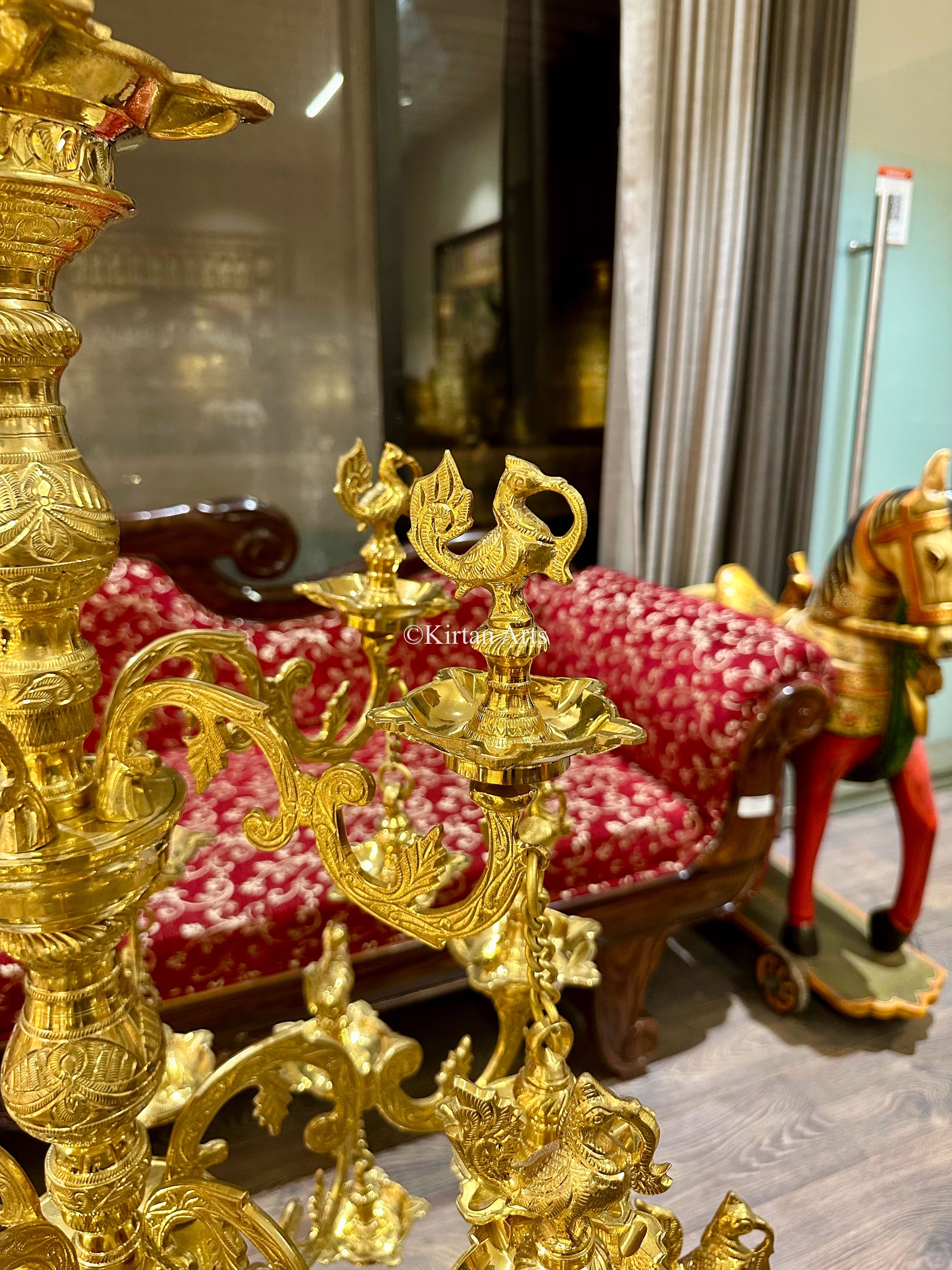 Transform your living space with our meticulously crafted bronze and brass luminaire, a testament to refined artisanal craftsmanship. This striking multi-hand lamp showcases an intricately carved Annapakshi motif in solid bronze, radiating warmth and cultural elegance. Engineered for practicality, the modular design allows effortless disassembly, making it ideal for relocation or compact storage without compromising its sophisticated aesthetic appeal.
