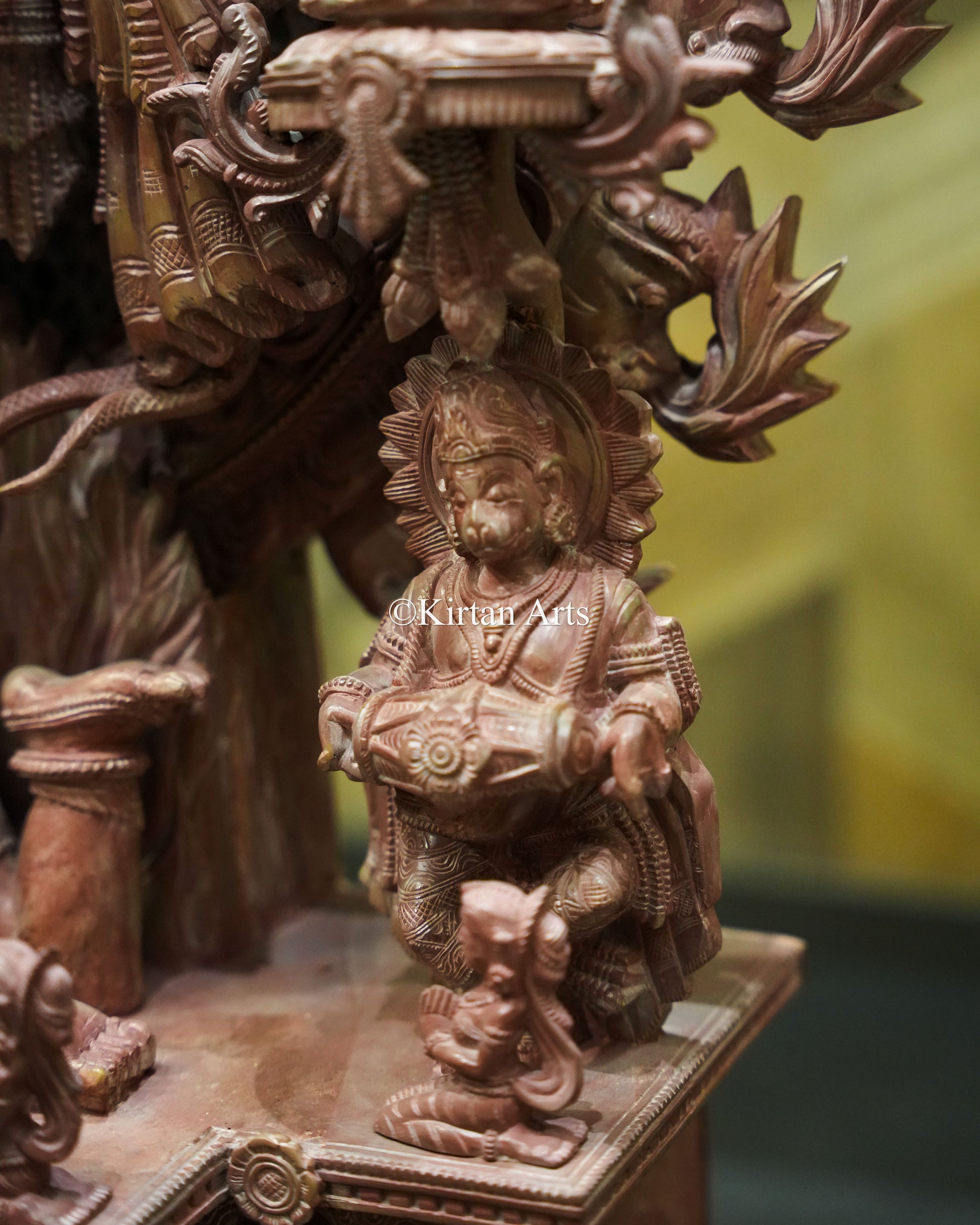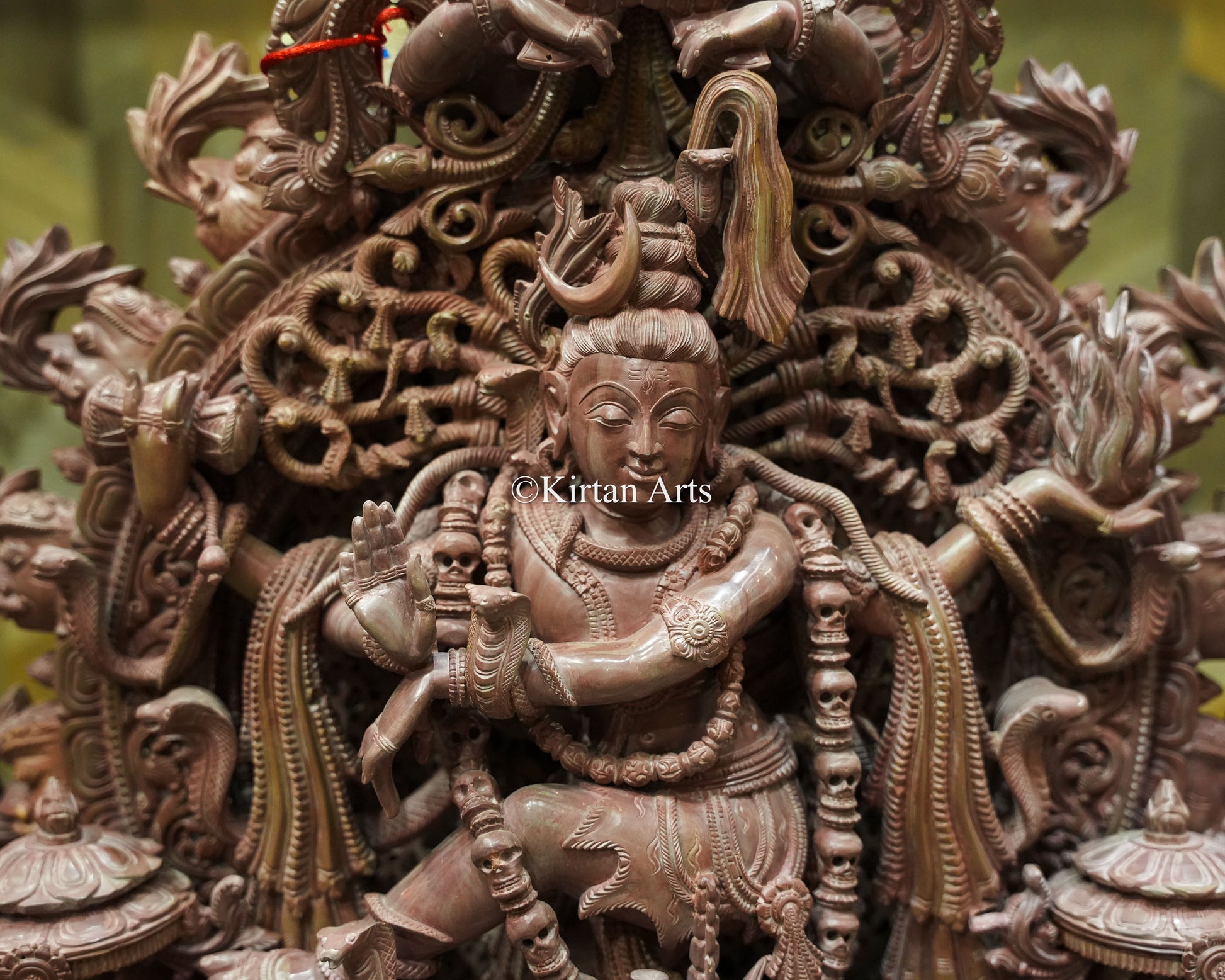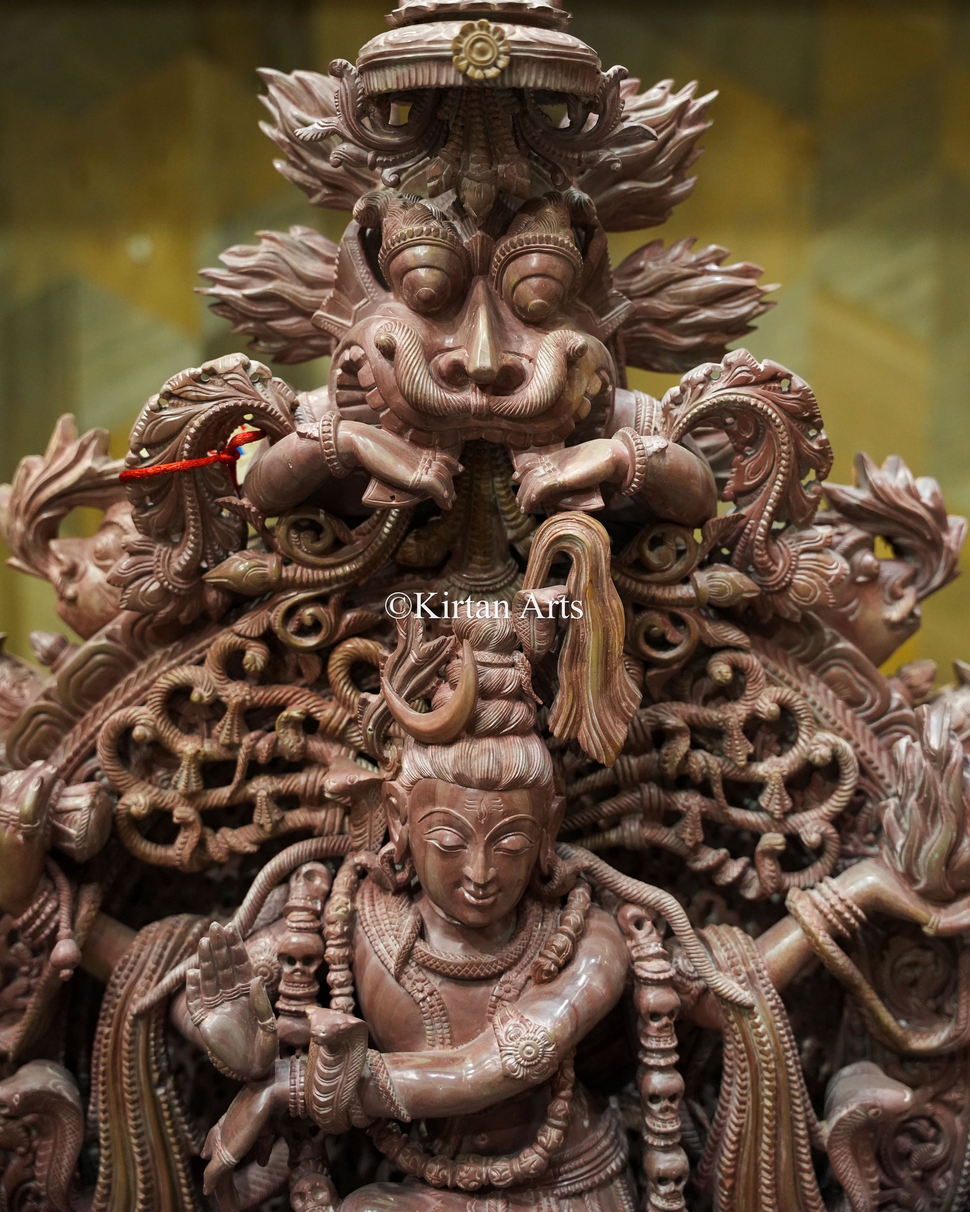 Sacred Attendants: The base features detailed carvings of Ganas (attendants) and sacred bulls, enhancing the narrative depth of the piece.