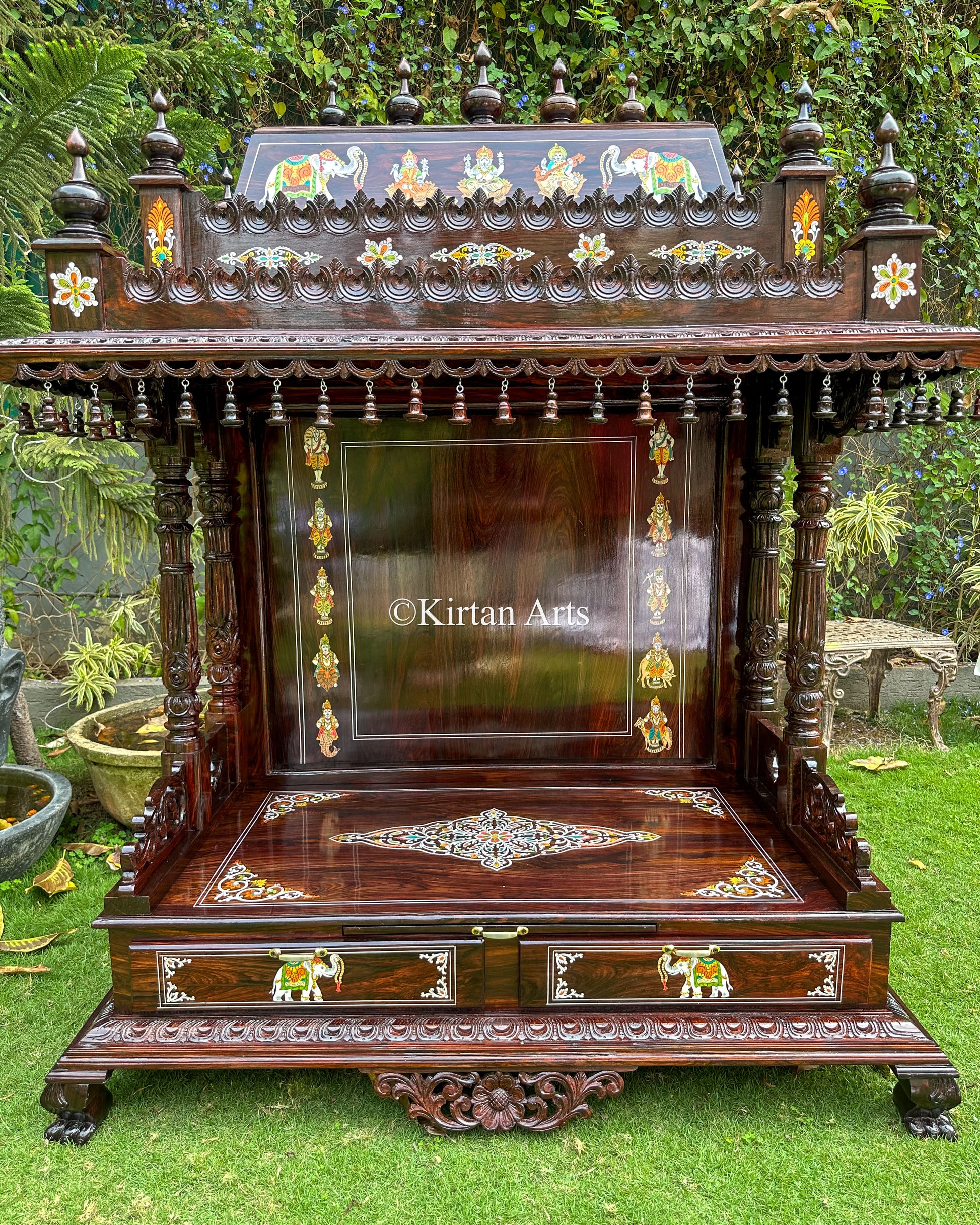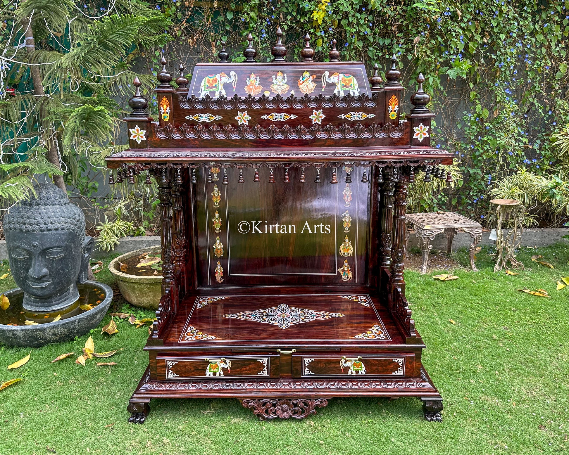 Premium Rosewood Pooja Mandir | Customisable Inlay Work | 5.6x4x2 ft