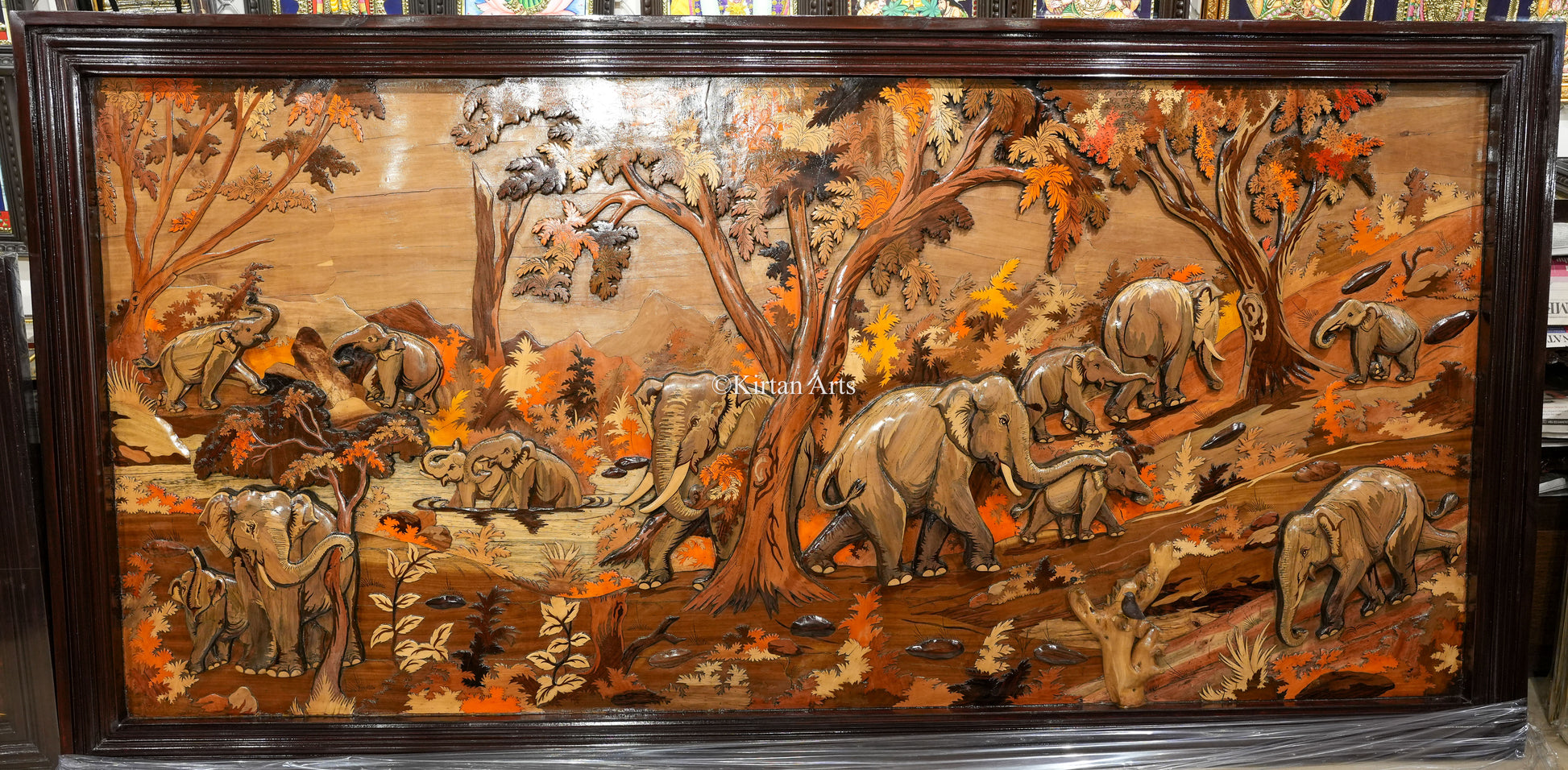 Rosewood Elephant Embossed Panel Artwork | 8x4 Ft