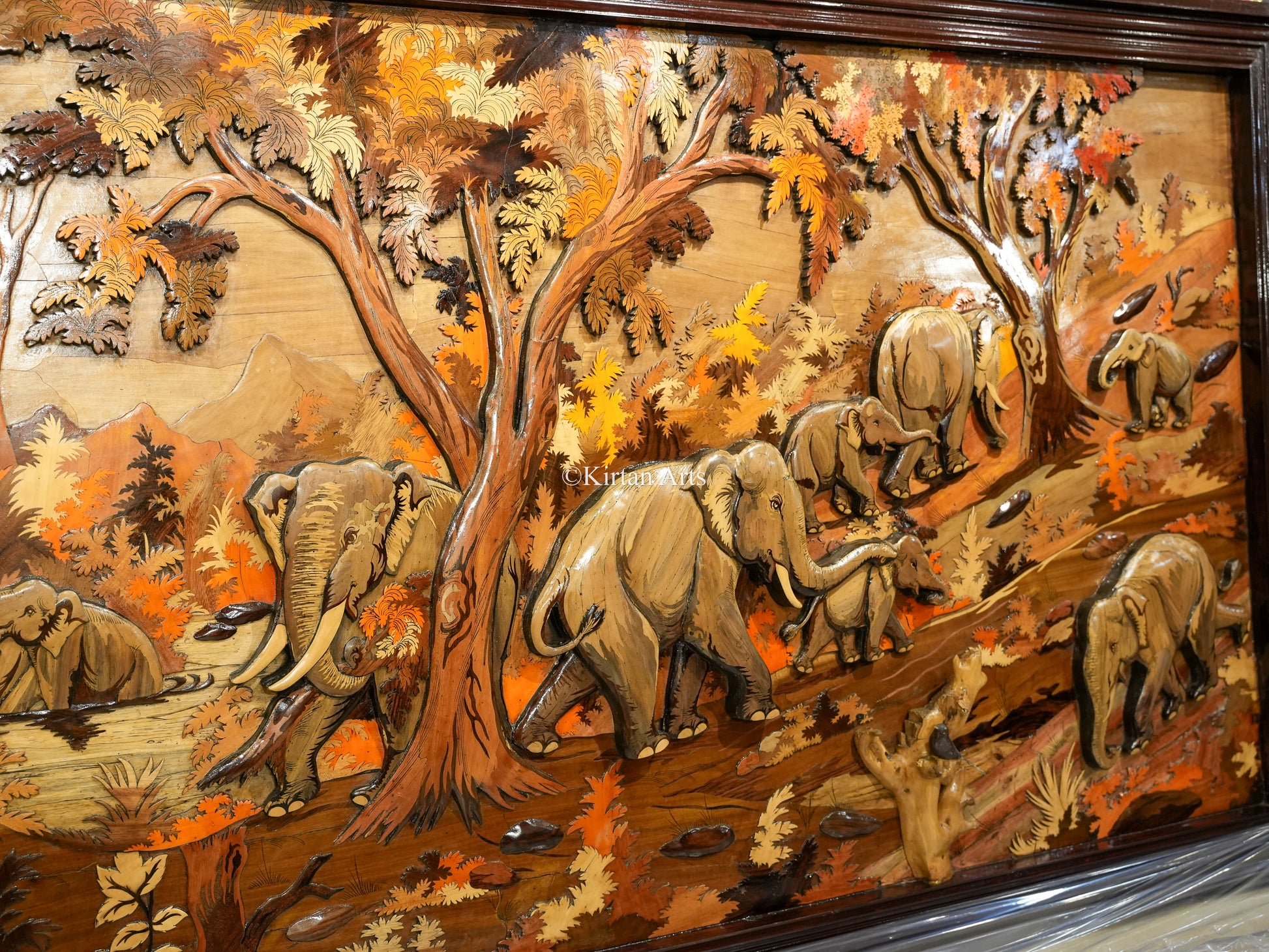 Elevate your space with this Rosewood 3D embossed elephant themed wall panel. The panel is completely handmade by skilled artisan from southern India. Wooden pieces are hand carved and layered on top of each other to create the 3D embossed effect. The panel will make a great addition to your home or office space.