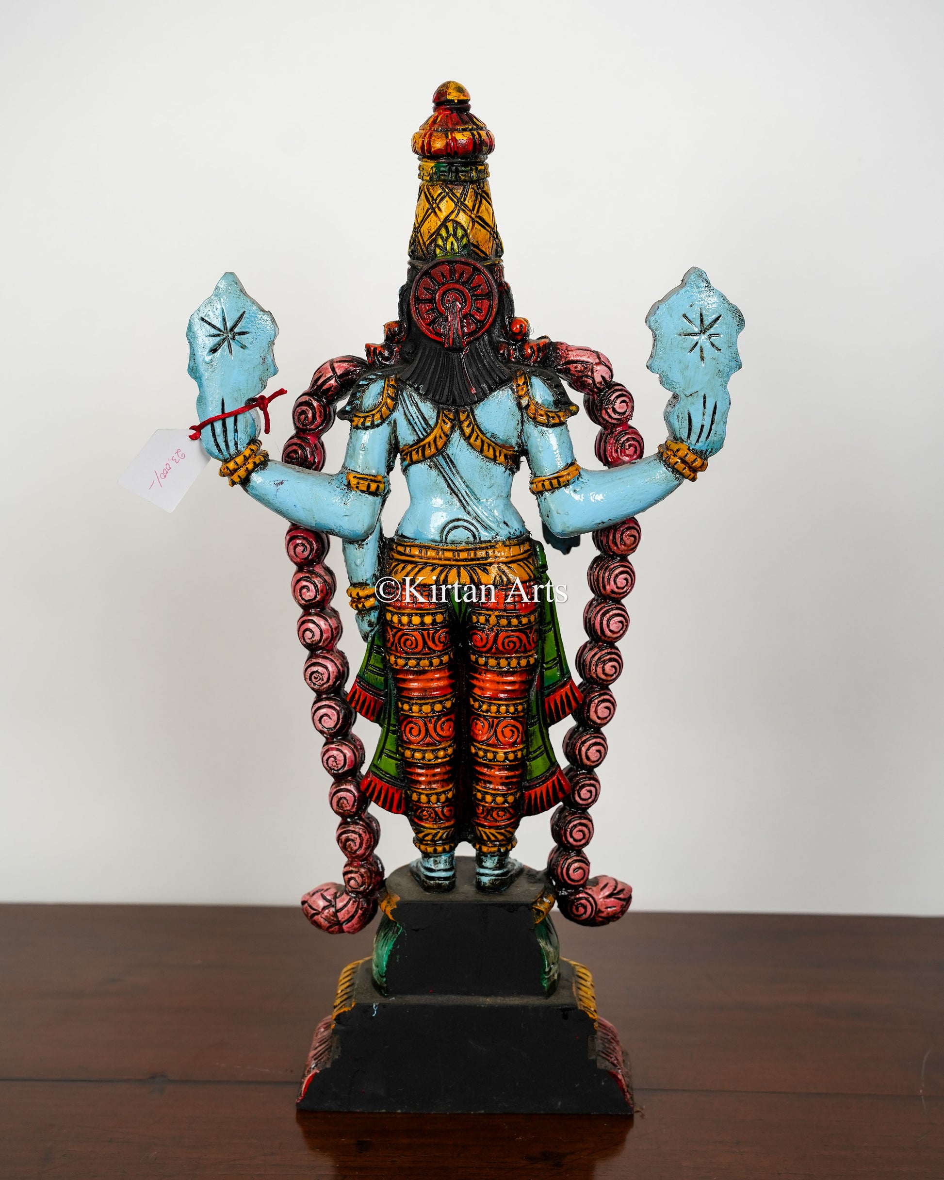 Wood Carved Tirupati Balaji (Kalyana Balaji) Idol | 24" | Distress Finish